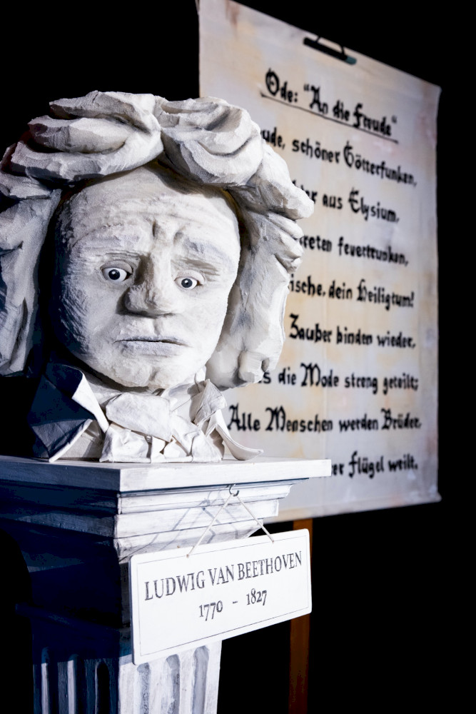 Ein Konzert-Theater für Flöte, Oboe, Klavier und Beethoven-Büste vom Ensemble Tityre und dem Figurentheater Tearticolo